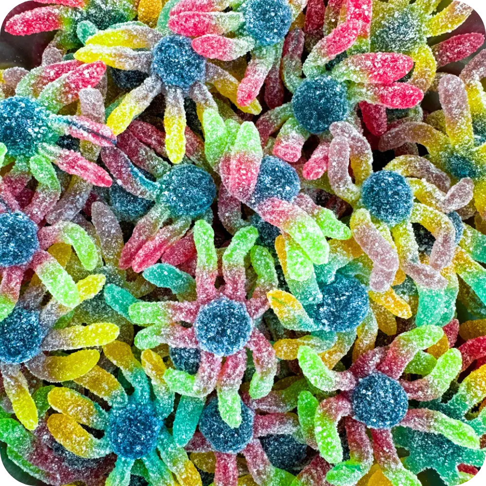 Zloženie: glukózový sirup, cukor, dextróza, voda, želírujúca látka: želatína, okysľujúce látky: E330, E270, regulátor kyslosti: E325, arómy, farbivá: E104, E129.