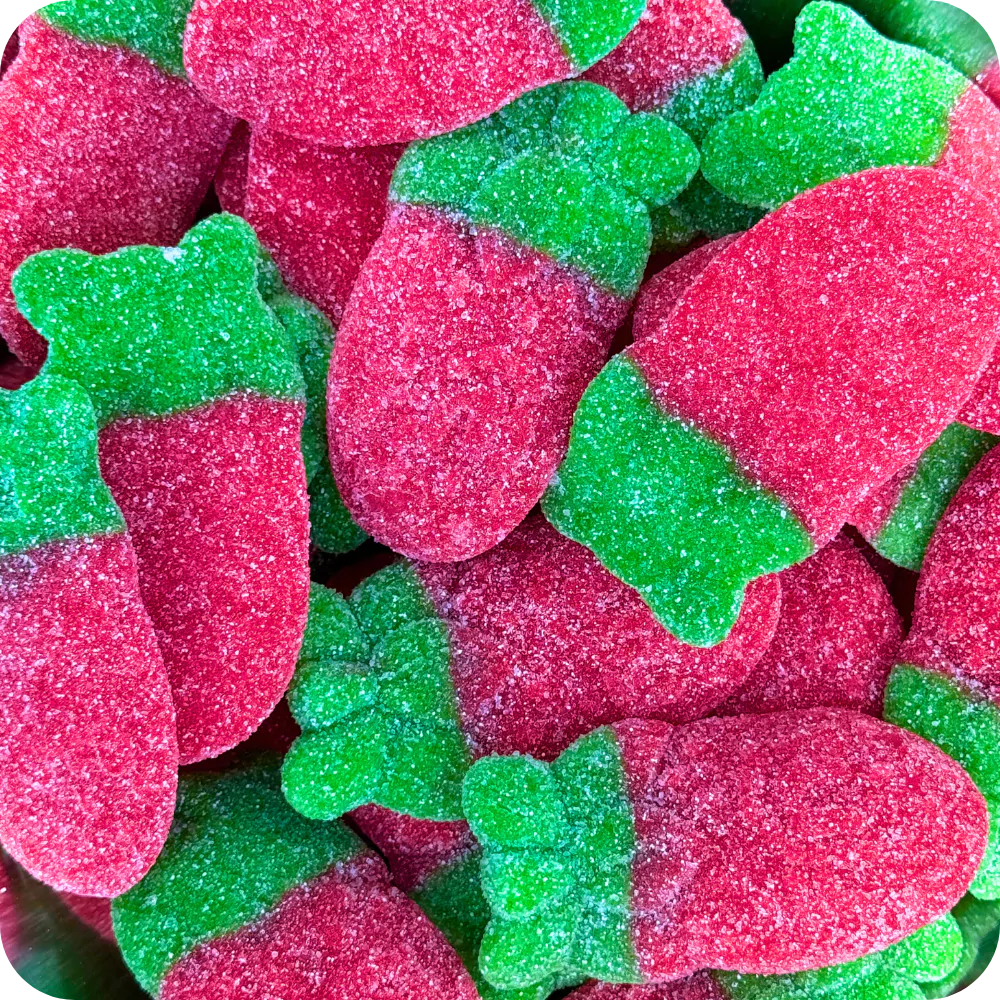 Objavte obrovskú kyslú jahodovú gumovú cukríku, ktorá svojou intenzívnou chuťou a jemnou textúrou ponúka skutočný chuťový zážitok pre milovníkov kyslých sladkostí!