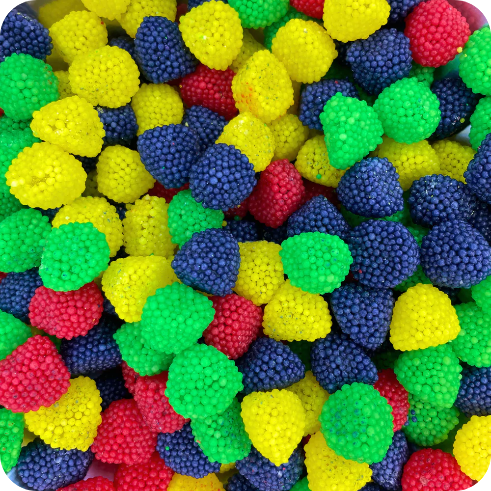 Želé cukríky s príchuťou černíc a malin sú lahodnou zmesou, ktorá ponúka želé cukríky s príchuťou černíc a malín a poskytuje sladký a ovocný zážitok.