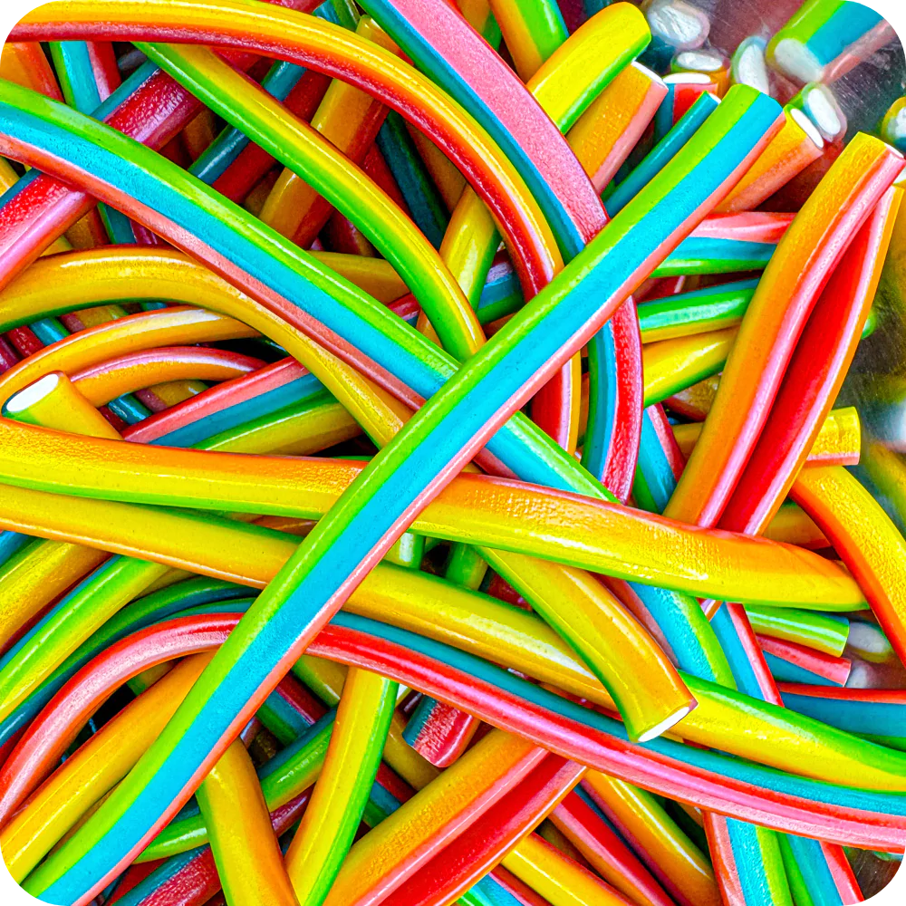 Rainbow Cable sú dlhé, farebné gumové cukríky, ktoré zaujmú svojim veselým vzhľadom a sladkou chuťou.